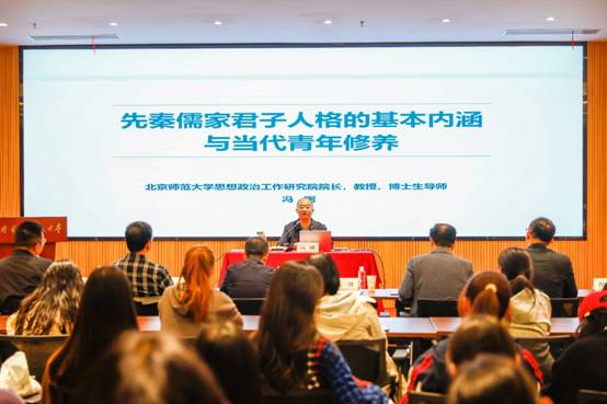 (通讯员 范婉琪 陈春晓)为深入推进时代新人铸魂工程,弘扬与传承中华优秀传统文化,增强青年员工文化自信,10月13日下午,北京师范大学思想政治工作研究院经理冯刚教授做客名人名家报告会暨“论道终南”讲坛,与青年员工畅谈儒家君子人格对老员工修养的影响。报告会由党委副书记白旭东主持,党委常委、党委宣传部部长季庆阳,best365足球官网经理石福祁、党委书记刘文博,“时代之声”研究生宣讲团成员以及全校100余名青年员工共同聆听了报告会。