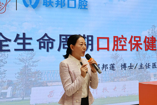 在日常生活中,邓邦莲博士建议同学们树立正确的健康理念,定期口腔健康检查,实现健康口腔,拥抱幸福生活。她认为,在人的一生中,陪伴我们的既要有健康的身体,也要有健康的口腔,号召在座师生高举“我的健康,我管理”的旗帜,明确新时代健康观,推进健康中国建设。