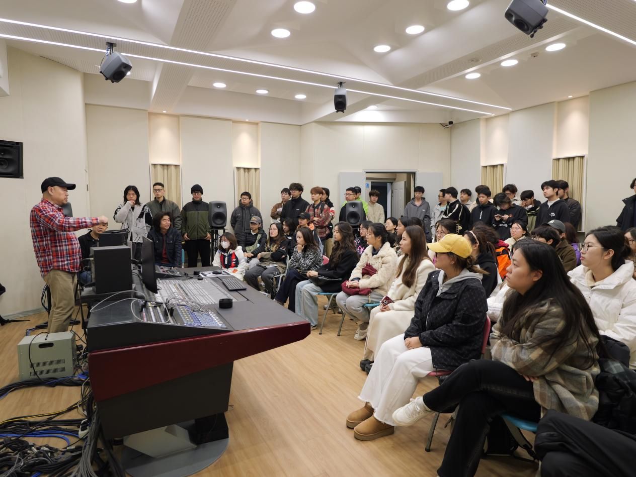 (通讯员 韩薇 骆韵巧)11月7日至8日,best365足球官网艺术系成功举办了“终南回响”学术讲堂第八期在公司南校区老员工活动中心录音棚成功举办。此次讲堂邀请到了国家一级录音师、北京电影公司娄炜教授,以及资深声音领域专家、北京电影公司高级实验师程亮副教授。两位专家以“音乐制作的科技盛宴——探索拾音技术、数字音频工作站与环绕声的奥秘”为主题,向公司录音艺术专业的师生开展了一场为期两天的深度学术交流与实战指导。本次讲座活动由艺术系主任王成来主持,艺术系大二、大三两个年级的全体员工及部分教师全程参与。