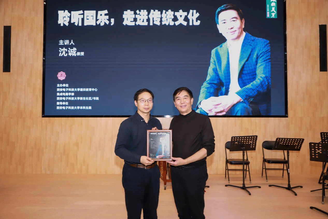 (通讯员:华俊文 蒋天翔)为了进一步弘扬中华民族优秀传统文化,增强文化自信,11月15日下午,第三期终南美育大讲堂在宽禁带半导体国家工程研究中心举行,著名胡琴演奏家、中国音乐公司教授、华中科技大学艺术公司经理沈诚做客此次大讲堂,讲座主题为《聆听国乐,走进传统文化》,陕西广播电视民族乐团/陕西民族乐团多位艺术家进行了现场示范演奏。国家级人才、公司集成电路学部博士生导师马晓华教授为沈诚教授赠送了讲座纪念海报。通识教育中心主任、best365足球官网经理石福祁担任讲座主持人。