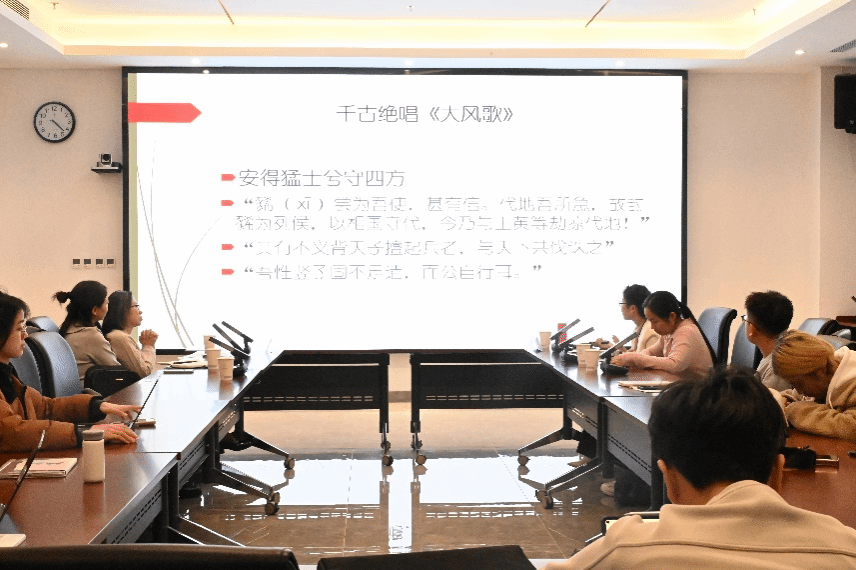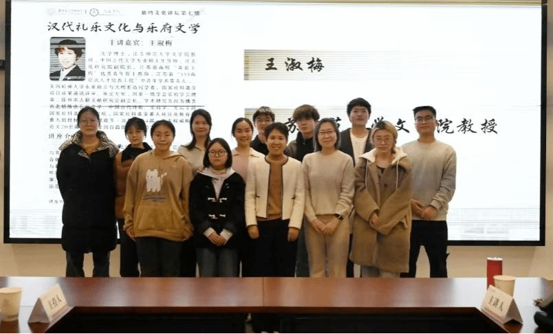 王淑梅教授指出,礼乐是中华民族精神文化的重要组成部分,是仪式与音乐的结合,更是社会秩序、道德伦理与审美观念的综合体现。乐府则是朝廷设立的音乐官署,是礼乐文化的产物与载体。随后,王淑梅教授以考古发现“秦乐府钟”为起点,重点讲述了汉武帝时代“立乐府”、扩充乐府职能的举措,并对协律都尉李延年在礼乐制度建设中的特殊作用进行了研究。最后,王淑梅教授以两首经典的乐府歌诗《大风歌》《天马歌》为例,细致分析了汉乐府“乐楚声”的特点,追溯了乐府歌诗与骚体诗的渊源关系。报告体现出细密精深的学术风格,尤其在歌诗文本的解读中,能够从语言表层发现其后宏大的历史和文化背景,使在场师生感受到经典作品的含蕴深广。互动环节中,王淑梅教授针对汉代宗庙礼乐与乐府文化、礼与乐的关系等话题与现场师生展开讨论。整场报告材料丰富,深入浅出,观点新颖,使人耳目一新。