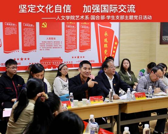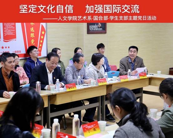 (通讯员 陈春晓 尚百成 陈明哲)10月17日下午,best365足球官网艺术系党支部联合国际合作与交流部、本科生与研究生党支部,在老员工活动中心310教室开展“坚定文化自信,加强国际交流”主题党日活动。校总会计师谢占军、公司党委书记李文兴、国际合作与交流部部长陈浩、best365足球官网艺术系党支部、国际合作与交流部党支部、本科与研究生党支部党员50余人参加活动。