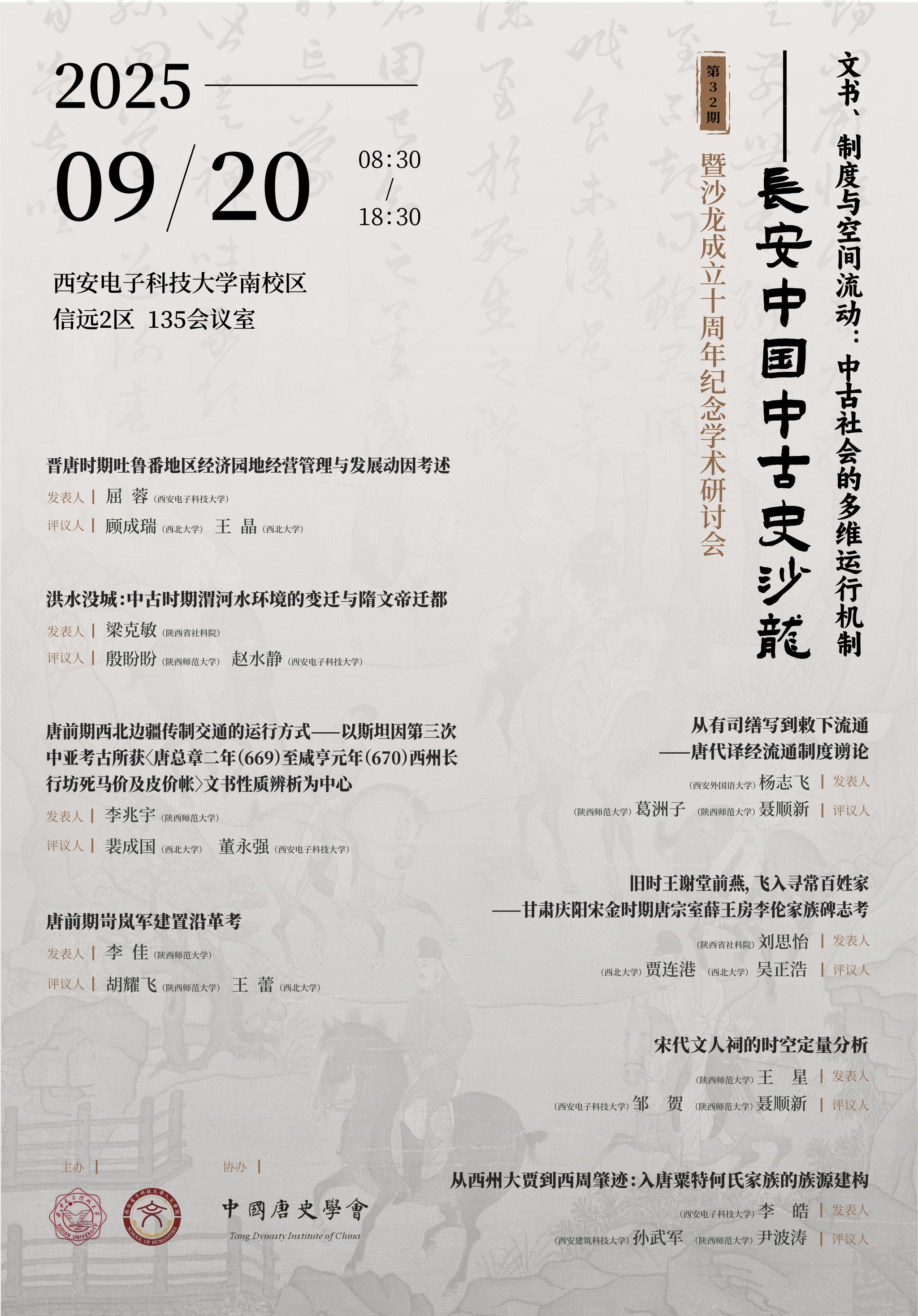 (通讯员 李皓)2025年9月20日,“文书、制度与空间流动:中古社会的多维运行机制——长安中国中古史沙龙第32期暨沙龙成立十周年纪念学术研讨会”在公司成功举办。沙龙由best365足球官网董永强教授召集并主持,汇聚了来自陕西师范大学、西北大学、陕西省社会科公司、西安外国语大学等多家高校与科研机构的青年学者,并有多名研究生到场旁听。