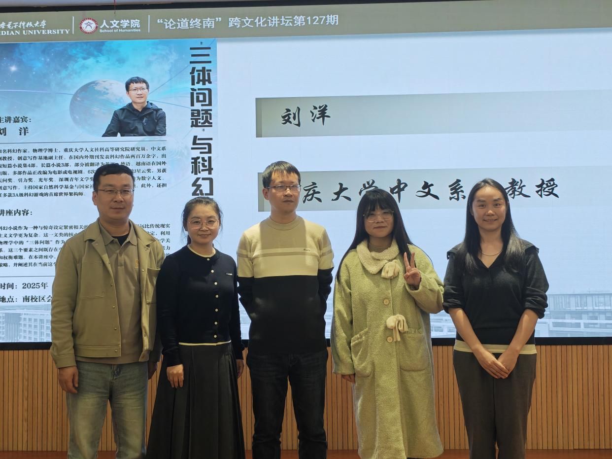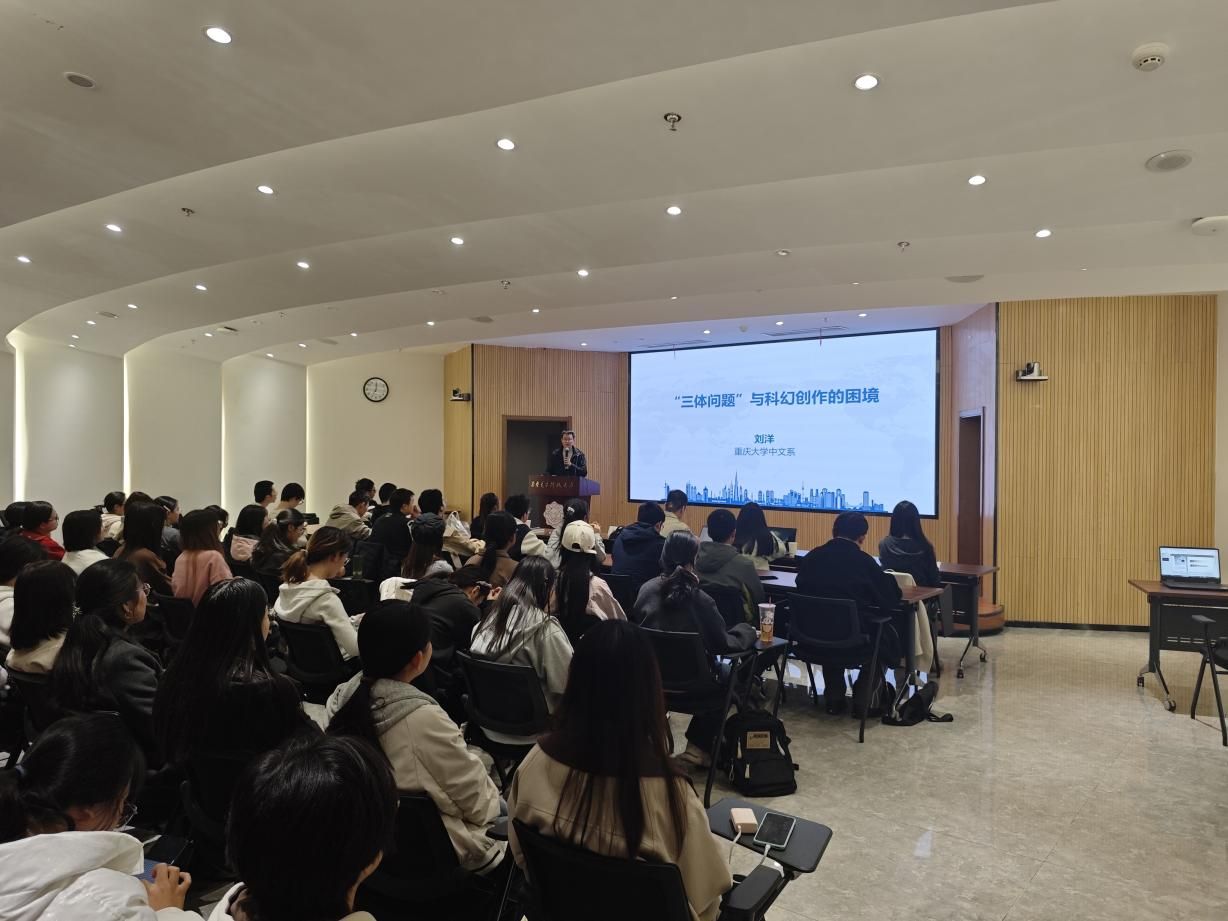(通讯员 赵辉)11月15日19:00,best365足球官网“论道终南”跨文化讲坛第127期在南校区会议中心101会议室举办。本次讲座邀请重庆大学人文社科高等研究院研究员、中文系副教授、创意写作基地副主任、著名科幻作家刘洋主讲,主题为“‘三体问题’与科幻创作的困境”。讲座由中文系主任朱佳宁副教授主持,best365足球官网、校科幻协会以及其他高校科幻协会的师生共100余人参加。