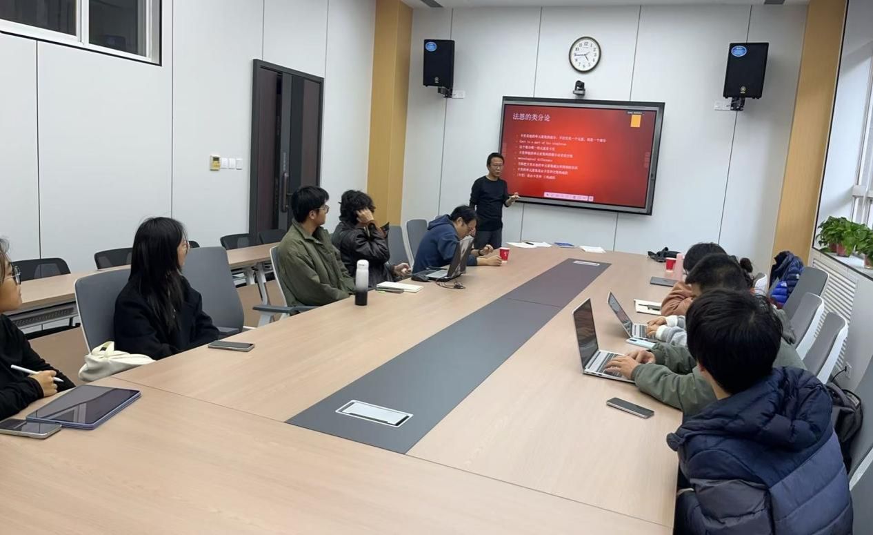 在本次报告中,薄谋副教授围绕数学哲学中的整分论问题展开,依次介绍了刘易斯(Lewis)的类分论、法恩(Fine)的化身理论(embodiment theory)以及乌斯基亚(Uzquiano)于2024年最新提出的类的整分论框架。他首先从刘易斯在《Parts of Classes》(1991)中用“子类—部分”关系解释集合论结构谈起,指出其中对于单元素集(singleton)的理解会带来若干哲学困难。接着,他重点分析了法恩对于严格化身(rigid embodiment)与变量化身(variable embodiment)的区分,说明其如何对经典整分论中的“怪兽异议”(monster objection)给出系统回应,从而使“无时间部分”与“时间部分”的关系得以更合理地解释。