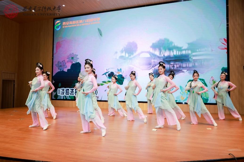 比赛现场,为创新大赛形式,活跃大赛氛围,高新区第八初级中学的员工和best365足球官网艺术系员工分别表演舞蹈《淡妆浓抹总相宜》和古筝合奏《盛世国乐》。