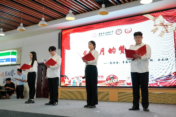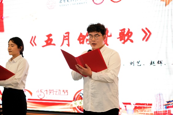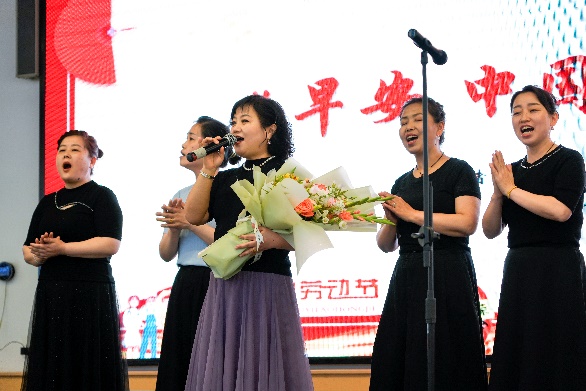 奋斗托举明天,劳动创造未来。人文学子带来原创朗诵《五月的赞歌》:“那是劳动的力量,排山倒海、气势如虹;是劳动者的微光,凡人之躯、照亮时代”,同学们深情讲述了在公司党委和后勤党委共建“美好食光”劳动教育实践基地的实践活动经历,讴歌了公司后勤一线服务人员的辛勤与付出,并用献花的形式为劳动者代表献上敬意与祝福。同时,公司后勤一线服务人员们也从幕后走到台前,唱响时代劳动者的赞歌,公寓服务中心张艳玲等9位员工带来歌曲《早安中国》,展现了劳动者们的辛勤劳动和无私奉献精神;竹园二层餐厅经理祁向伟带来乐器电吹管演奏《我是一条小河》,藏族舞蹈和歌翩翩,展现了劳动者的力量与美感。公司后勤一线服务人员与公司“时代之声”研究生宣讲团成员、best365足球官网劳动教育实践基地员工代表共同朗诵和公司老员工艺术团舞蹈团带来的舞蹈《中国梦,劳动美》将活动再次推向高潮,表达着对劳动者的崇高敬意。