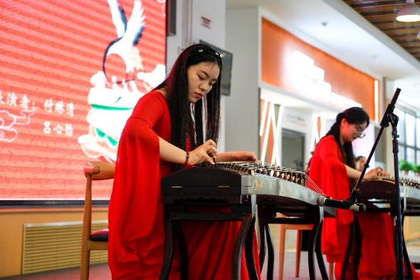 活动在一曲声势宏大的古筝合奏《盛世国乐》中拉开帷幕。演员们身着盛装,以歌曲、舞蹈、朗诵、魔术等形式为劳动者们带来一场精彩纷呈的文化演出。