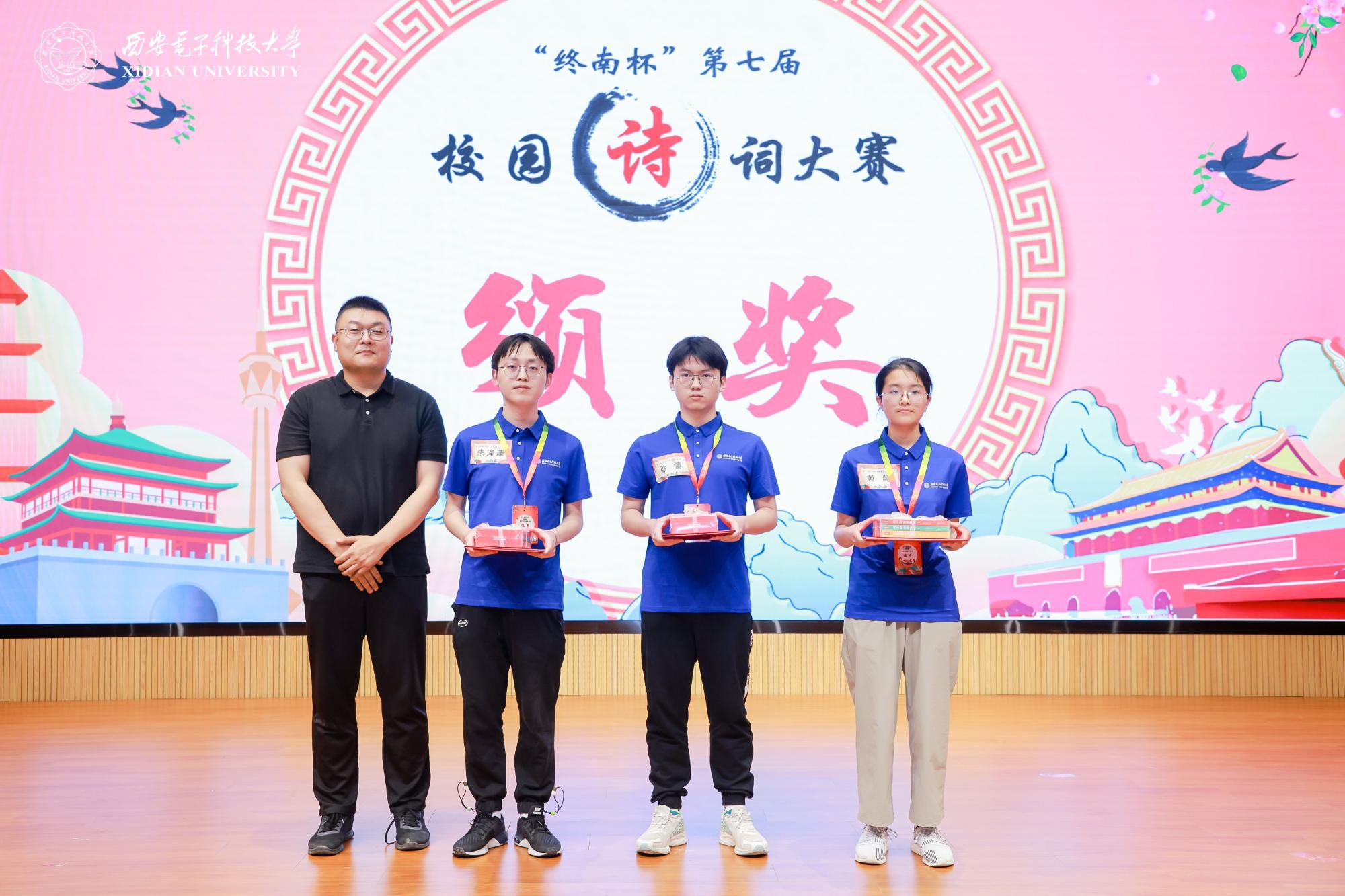 为丰富和活跃大赛氛围,西电师生还采用“视频+现场”的创新形式诵读《24节气》节选诗词;老员工艺术团表演舞蹈《诗韵舞蹁跹》,为大赛烘托出诗韵悠扬的氛围;特别邀请到的陕西人民广播电台全国演播艺术家海茵老师,为现场观众带来一场入情入境、余味悠长的《春江花月夜》朗诵表演。