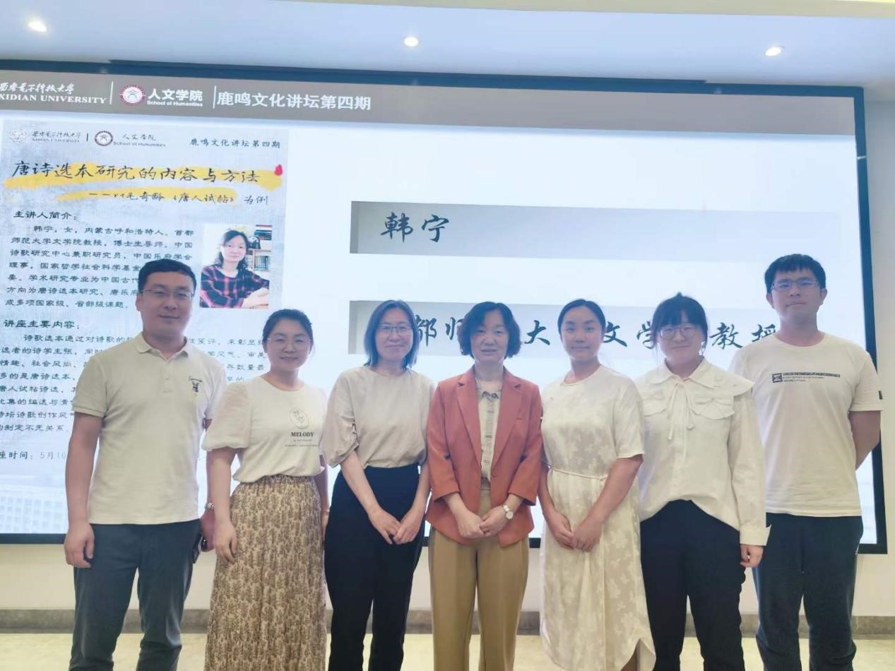 (通讯员 秦国程)5月10日晚7:00,best365足球官网中文系“鹿鸣文化讲坛”第四期在南校区会议中心121室举办。本次活动特邀首都师范大学文公司教授、博士生导师韩宁主讲,题目为“唐诗选本研究的内容与方法——以毛奇龄《唐人试帖》为例”。活动由中文系教授王志清主持,中文系主任朱佳宁及青年教师李东若、刘茸茸、连晨炜、王璐和四十余位在读本、硕员工聆听并参与了讨论。