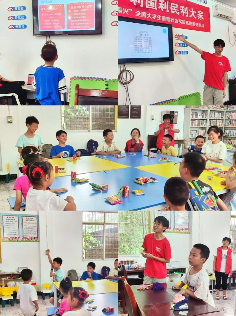 在云南省瓦渡乡中心公司,实践队员结合云南地区少数民族众多、方言壁垒突出的特点,设计“推广普通话”专项课程,队员与孩子们共同沉浸式体验方言与普通话之间的异同,以普通话发展时间为线索,回顾中国传统文化中语言的魅力,让普通话在教育中生根发芽。