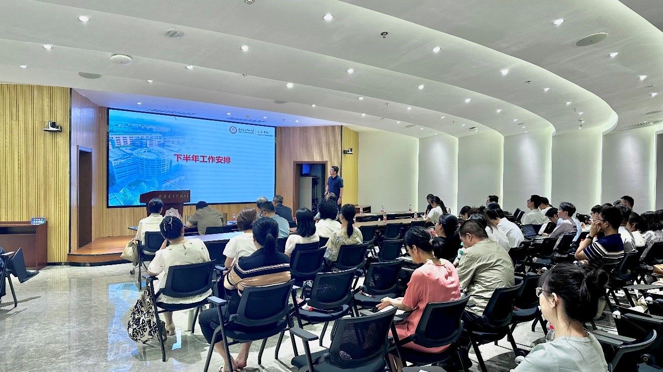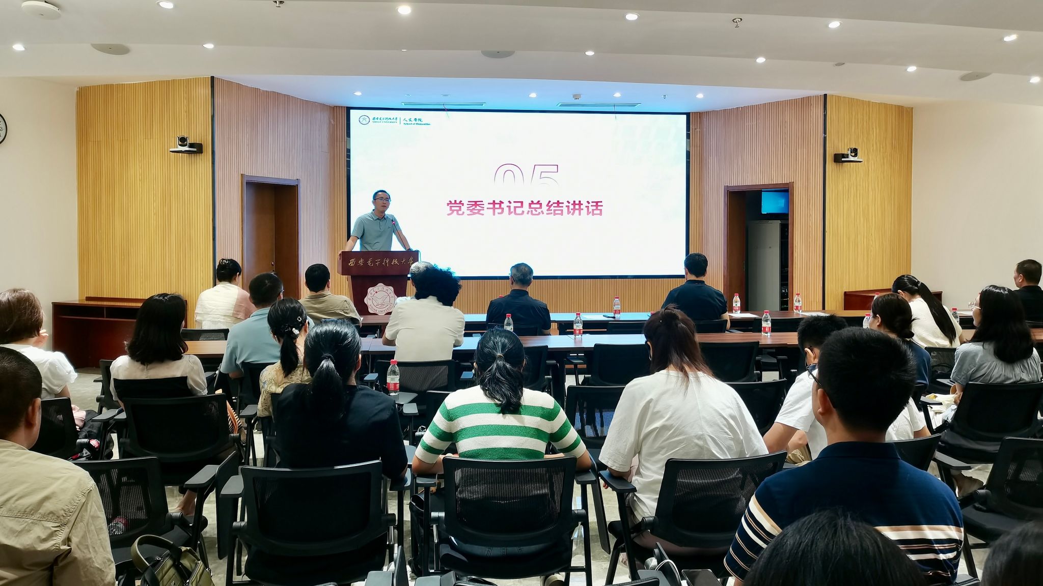 党委书记刘文博在总结讲话中充分肯定了公司上半年取得的成绩,对全体教职工做出的努力表示感谢。就做好公司下半年工作,刘文博提出了三点要求。一是提高政治站位,把思想和行动统一到党中央决策部署和公司党委工作要求上来。要始终坚持以习近平新时代中国特色社会主义思想为指导,深入学习贯彻党的二十届三中全会精神和全国教育大会精神,深刻领悟“两个确立”的决定性意义,增强“四个意识”、坚定“四个自信”、做到“两个维护”。落实好每周三下午政治理论学习制度,公司领导班子成员要深入各支部各系,加强与师生交流,听取意见建议,切实解决实际问题。二是守牢底线红线,将党纪学习教育成果持续转化为推动高质量发展的强大动力。严守课堂教学秩序底线,严肃教学纪律,提高教学质量,涵养良好教风学风。严守师德师风红线,认真落实教育部《新时代教师职业行为十项准则》,构建和谐平等导学关系,严格自我约束、规范职业行为、强化道德自觉。严守意识形态防线,严把教材选用关,规范网上网下行为,不断增强政治敏锐性和政治鉴别力。三是狠抓工作落实,推动公司各项事业迈上新台阶。要以筹备公司第三次党员代表大会为契机,谋划好公司未来发展。要强化科技教育和人文教育协同,优化通识教育课程体系,不断提高公司人才自主培养质量。举办高水平学术活动,进一步提升人文学科影响力。强化有组织科研,产出一批有较大影响力的研究成果,加强团队队伍建设,努力为广大教师创造良好的工作生活环境。