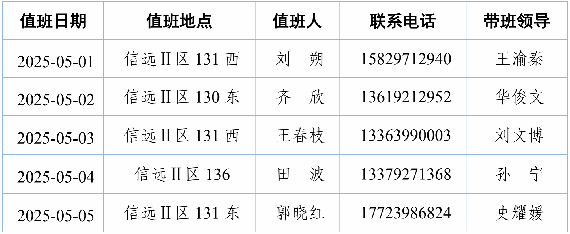 按照公司《关于2025年劳动节放假时间安排的通知》要求,现将公司2025年劳动节假期值班安排如下: