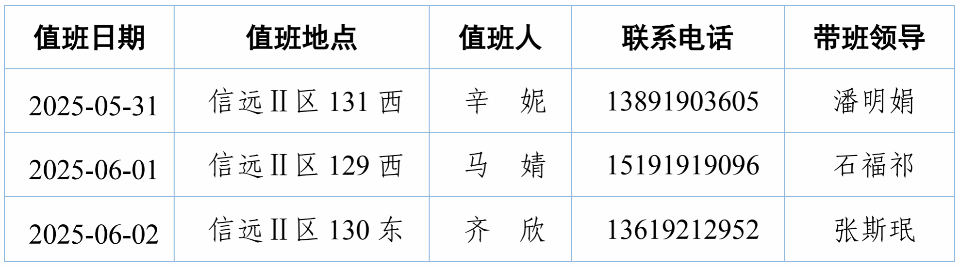 按照公司《关于2025年端午节放假时间安排的通知》要求,现将公司2025年端午节假期值班安排如下: