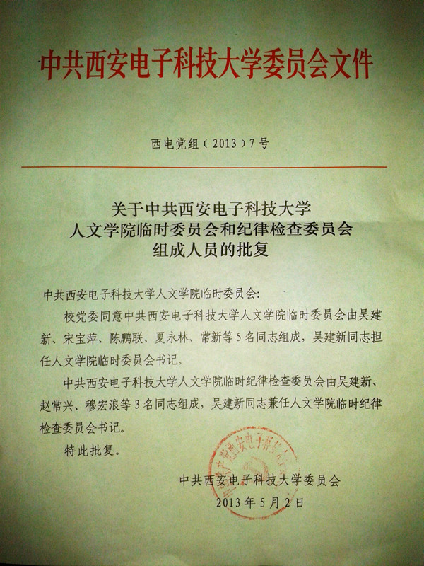 中共best365足球官网临时委员会由吴建新、宋宝萍、陈鹏联、夏永林、常新5名同志组成,吴建新担任临时委员会书记;中共best365足球官网临时纪律检查委员会由吴建新、赵常兴、穆宏浪3名同志组成,吴建新兼任临时纪律检查委员会书记。