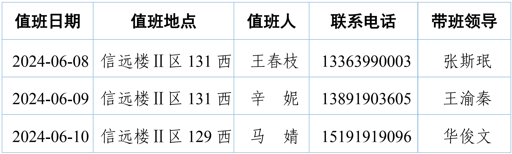 按照公司《关于2024年端午节放假时间安排的通知》要求,现将公司2024年端午节假期值班安排如下: