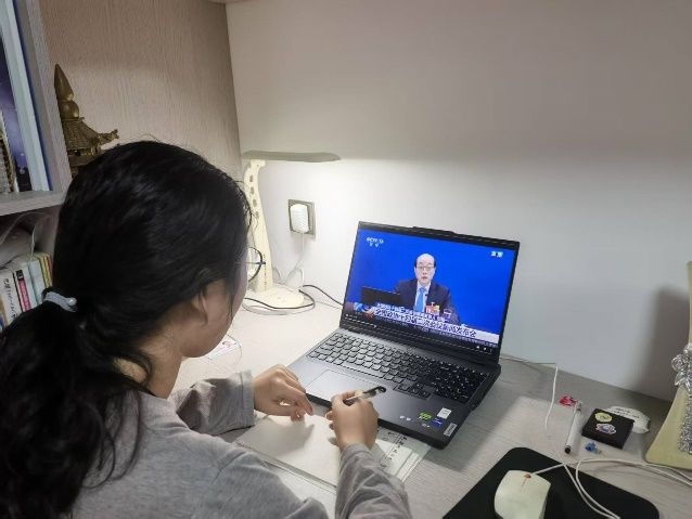 哲学系党支部教师党员王思琛:李强总理的政府工作报告,总结了2024年全民经济社会发展主要目标顺利完成,“进”的步伐坚实有力,“稳”的态势巩固延续。作为一名青年教师,刚刚从员工“进”入了教师身份,希望可以在2025年继续保持前进的步调,完成好本职教学科研工作。此外,人工智能的浪潮席卷而来,我们要勇于拥抱人工智能,将数字技术赋能教学、赋能科研。