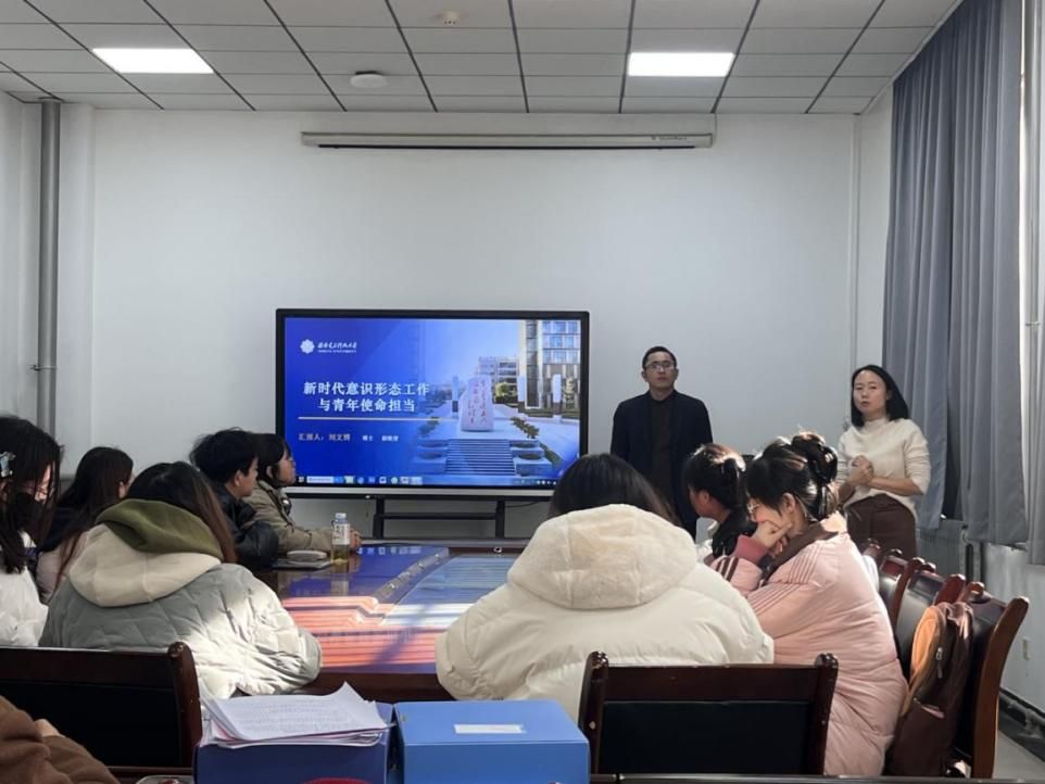 讲座中,刘文博以当前社会发展中的热点现象为切入点,从意识形态工作的重要性出发,引入了对意识形态概念的理解阐述,让同学们对意识形态有了更为清晰的认识。他强调,意识形态工作事关党的前途和命运、事关国家的长治久安、事关民族凝聚力和向心力;高校意识形态工作对青年员工形成正确价值取向有至关重要的作用。刘文博结合信息茧房、圈层文化等互联网特点,深入浅出地介绍了网络全民主体时代高校青年意识形态面临的风险和挑战;他希望同学们要提高思想认识,以习近平新时代中国特色社会主义思想为指导,守好边界底线,坚决抵制不良思想的侵蚀,积极传播正能量,努力做意识形态工作的“局中人”“明白人”和“亮剑人”。