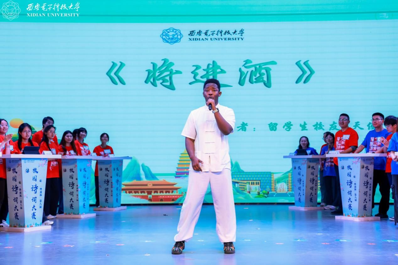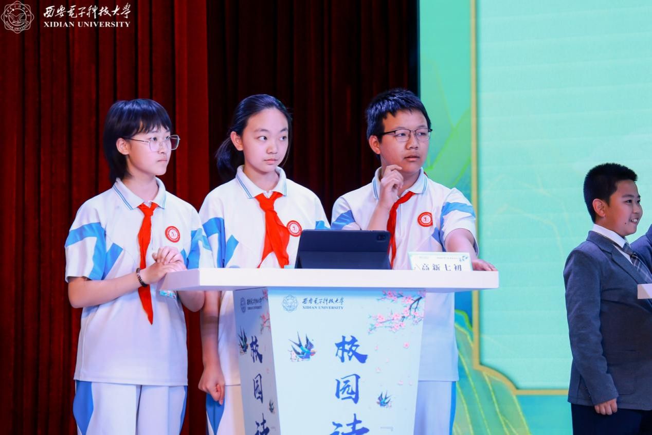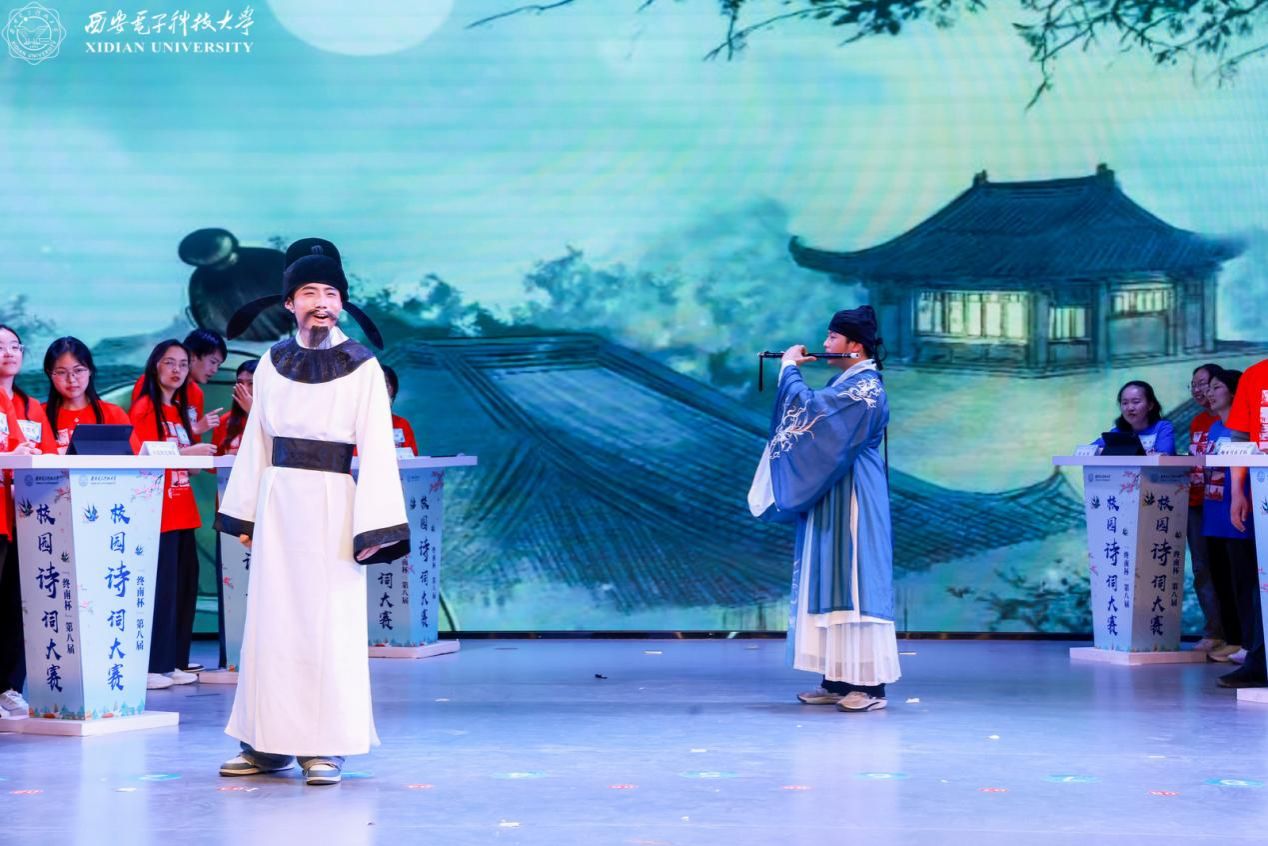 为丰富和活跃大赛氛围,大赛特安排暖场环节。“时代之声”研究生宣讲团以“AI视频+真人现场”的创新形式诵读《数智华彩·长安胜迹吟》原创作品,展示数字赋能下千年遗迹的生机与活力;西安高新区第八初级中学合唱团表演的合唱《声声慢》余音绕梁;西安市高新区第五初级中学舞蹈团表演的舞蹈《十八焕珠》翩跹灵动,共同烘托出决赛现场的诗韵氛围。除此之外,活动特别邀请到职工员工天使进行现场互动,并表演吟诵李白的《将进酒》,创新性融入抑扬顿挫的陕西方言,全场观众在这跨越千年的激昂韵律之中,感受诗仙的洒脱不羁以及中华传统文化的深厚韵味。