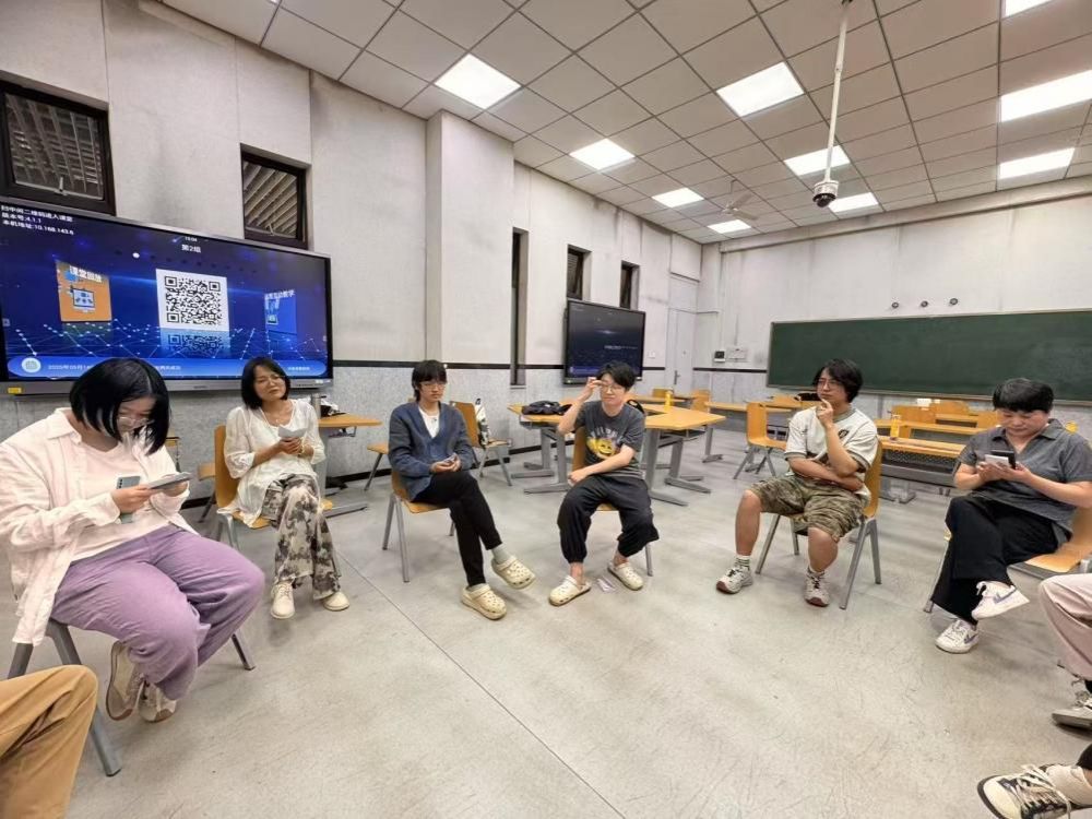 活动伊始,张思雯老师以别开生面的“认识你我他”游戏环节打破拘谨氛围。全体同学围坐成象征完整的同心圆,在老师的引导与示范下,每位参与者以“有意义的新名字+专属动作”重构身份,诞生了“不随便”“明日香”“懒羊羊”“巴巴托斯”等充满生命力的新代称。随着个性化招呼动作的传递,教室里的欢笑声激活了团体心理场域的能量流动。