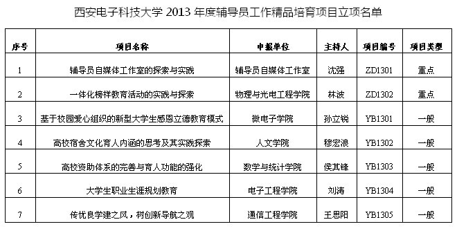 11月4日,best365足球官网公布了2013年度辅导员工作精品培育项目立项名单,best365足球官网辅导员穆宏浪主持的《高校宿舍文化育人内涵的思考及其实践探索》成功立项。